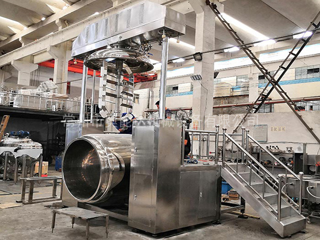 鍋蓋可升降,傾倒出料,也可鍋底放料,清洗方便。通過電熱管對鍋夾層內(nèi)的導(dǎo)熱介質(zhì)進行加熱來實現(xiàn)對物料的加熱,加熱溫度任意設(shè)定,自動控制,均質(zhì)攪拌分別具有時間設(shè)定功能操作方便。在夾層內(nèi)接入冷卻液即可對物料進行冷卻,操作簡單、方便,夾層外設(shè)有保溫層。均質(zhì)系統(tǒng)和攪拌系統(tǒng)可分開使用,也可同時使用。物料的微?;蛇_到200um-2um 、乳化、混合、調(diào)勻、分散等可于短時間內(nèi)完成。與物料接觸部分采用不銹鋼醫(yī)用316L或者304,內(nèi)表面鏡面拋光,真空攪拌裝置衛(wèi)生清潔,采用符合GMP規(guī)范的衛(wèi)生標準制造,是客戶的膏霜生產(chǎn)設(shè)備。