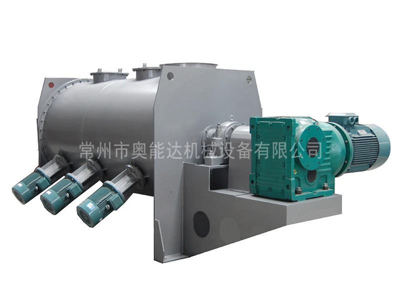 犁刀混合機,由主軸減速機帶動犁刀組軸運動,一部分將物料沿筒體圓周作徑向運動,同時將物料沿犁刀兩側(cè)的法線方向拋出,另一部分被拋出物料經(jīng)飛刀組時,被高速旋轉(zhuǎn)的飛刀剪切攪拌也適合粘狀、稠狀、塊狀固—固(粉體與粉體)、固—漿(粉體與膠漿液)的物料或密度差異大的物料也能混合。